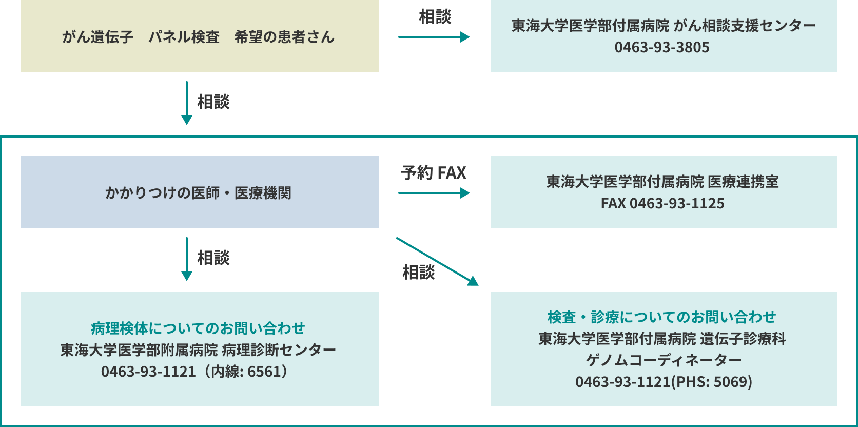当院に通院されていない方が当院のがんゲノム外来を受診希望される際は、医療機関から予約していただく必要があります。まずかかりつけの担当医師にご相談ください。患者さんから直接の予約申し込みはお受けしておりません。
